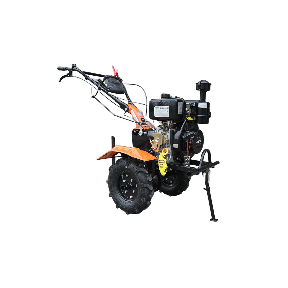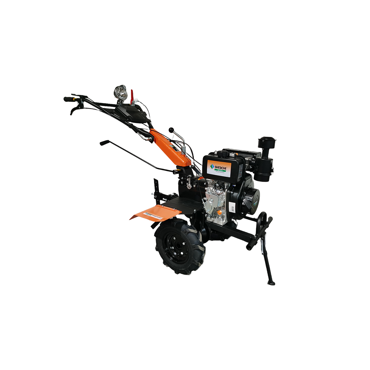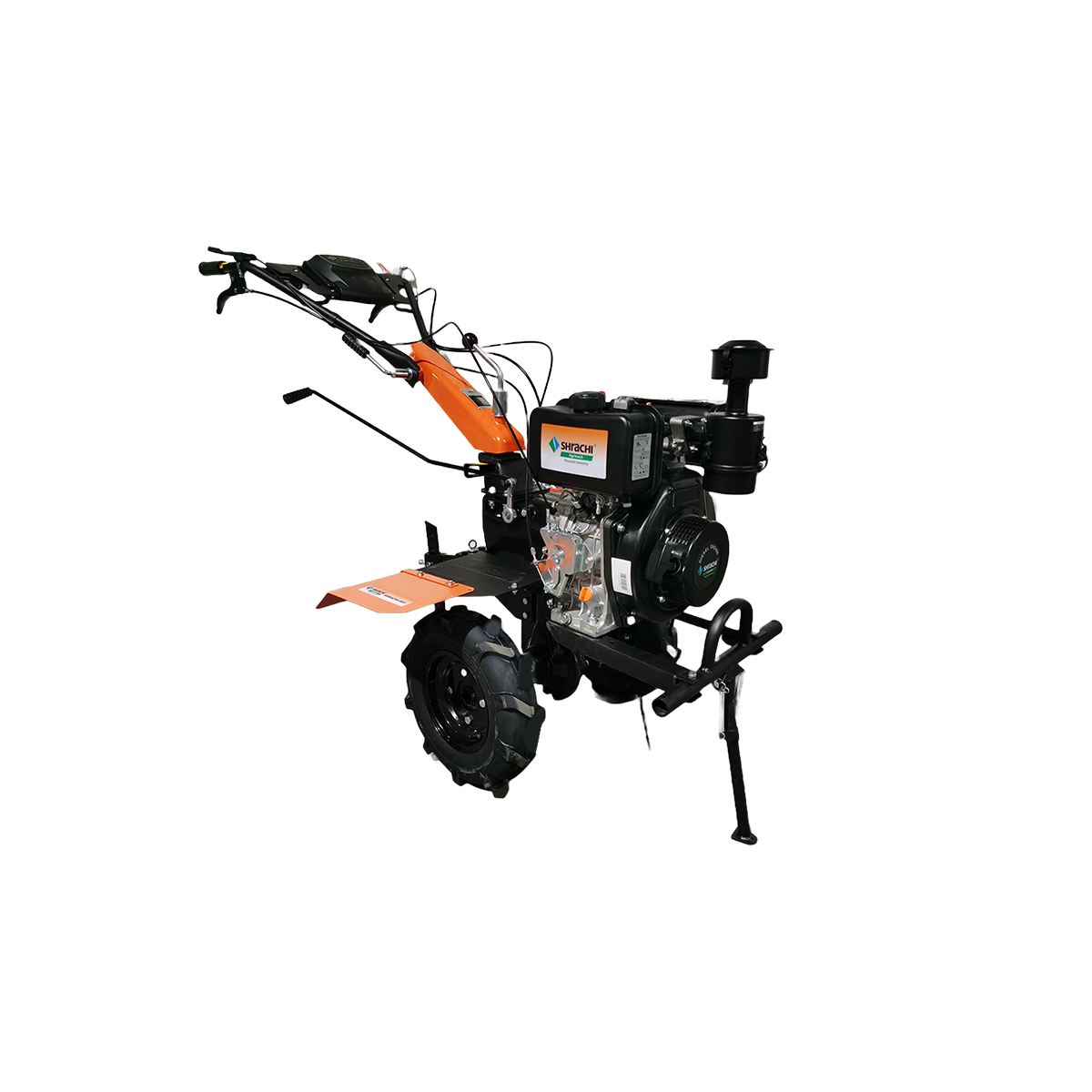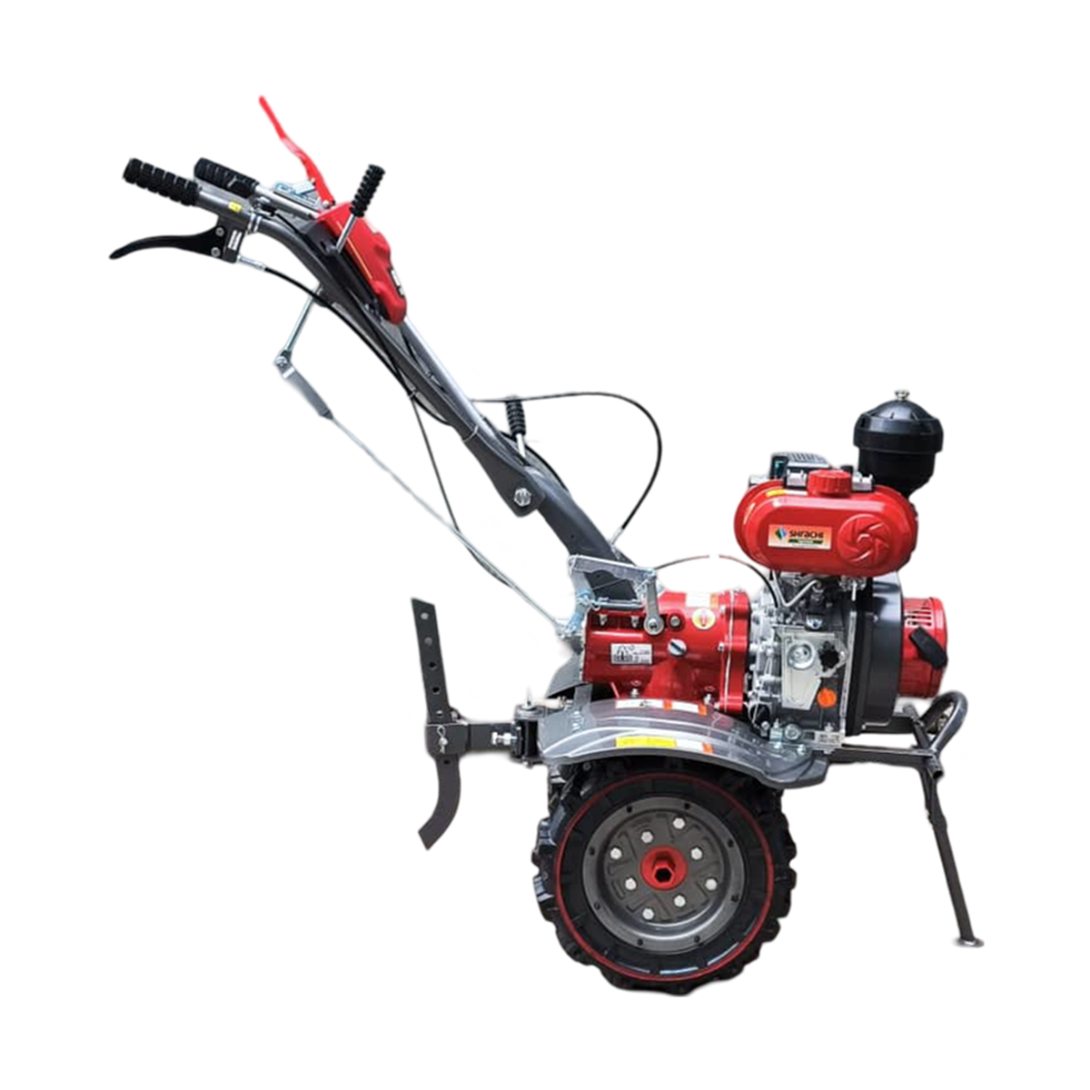 The Shrachi 8D6 Hero Diesel Power Weeder is powered by a robust 9HP engine delivering 9HP at 3600 rpm, ensuring high-performance operation across both dryland and wetland conditions. It features a big bumper and mud flap for added protection and durability. With an auxiliary PTO for connecting a water pump, generator, sprayer, and more, this machine offers true multifunctional capability for diverse farming needs.
