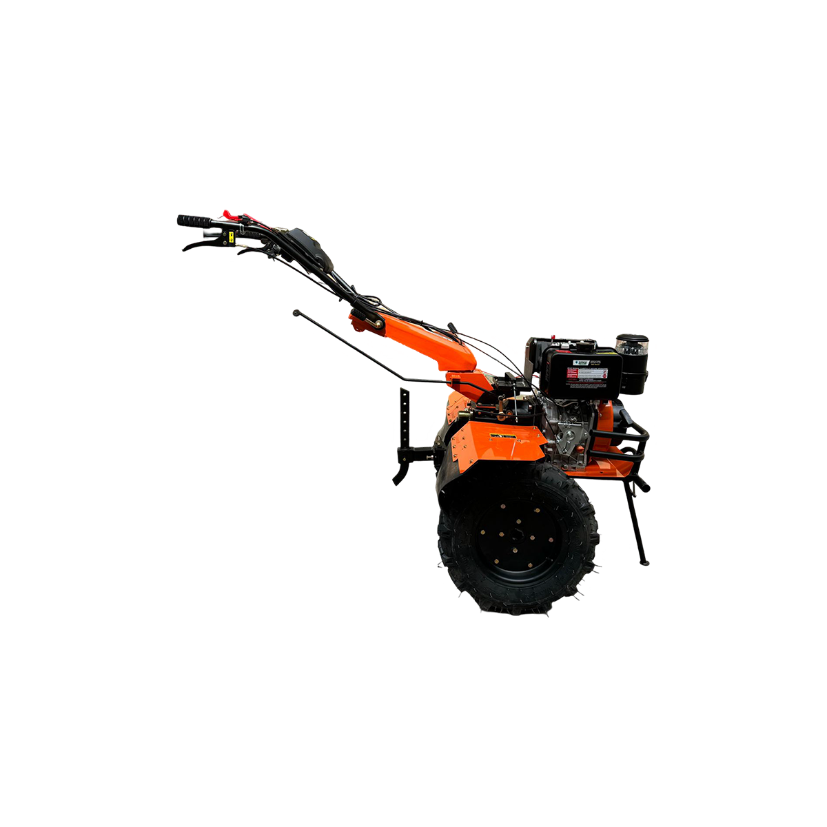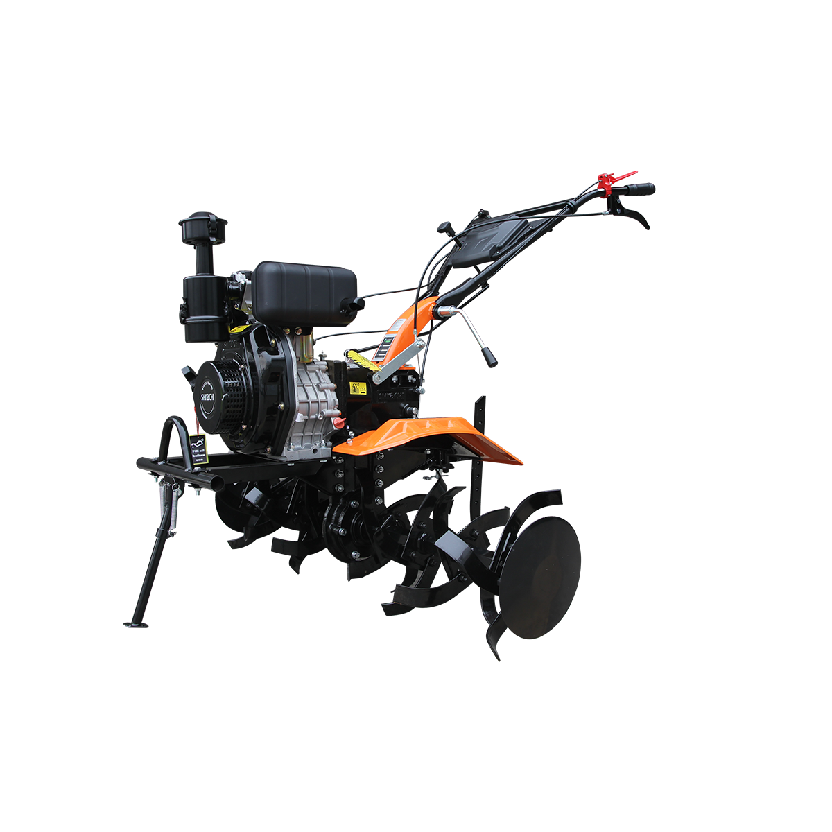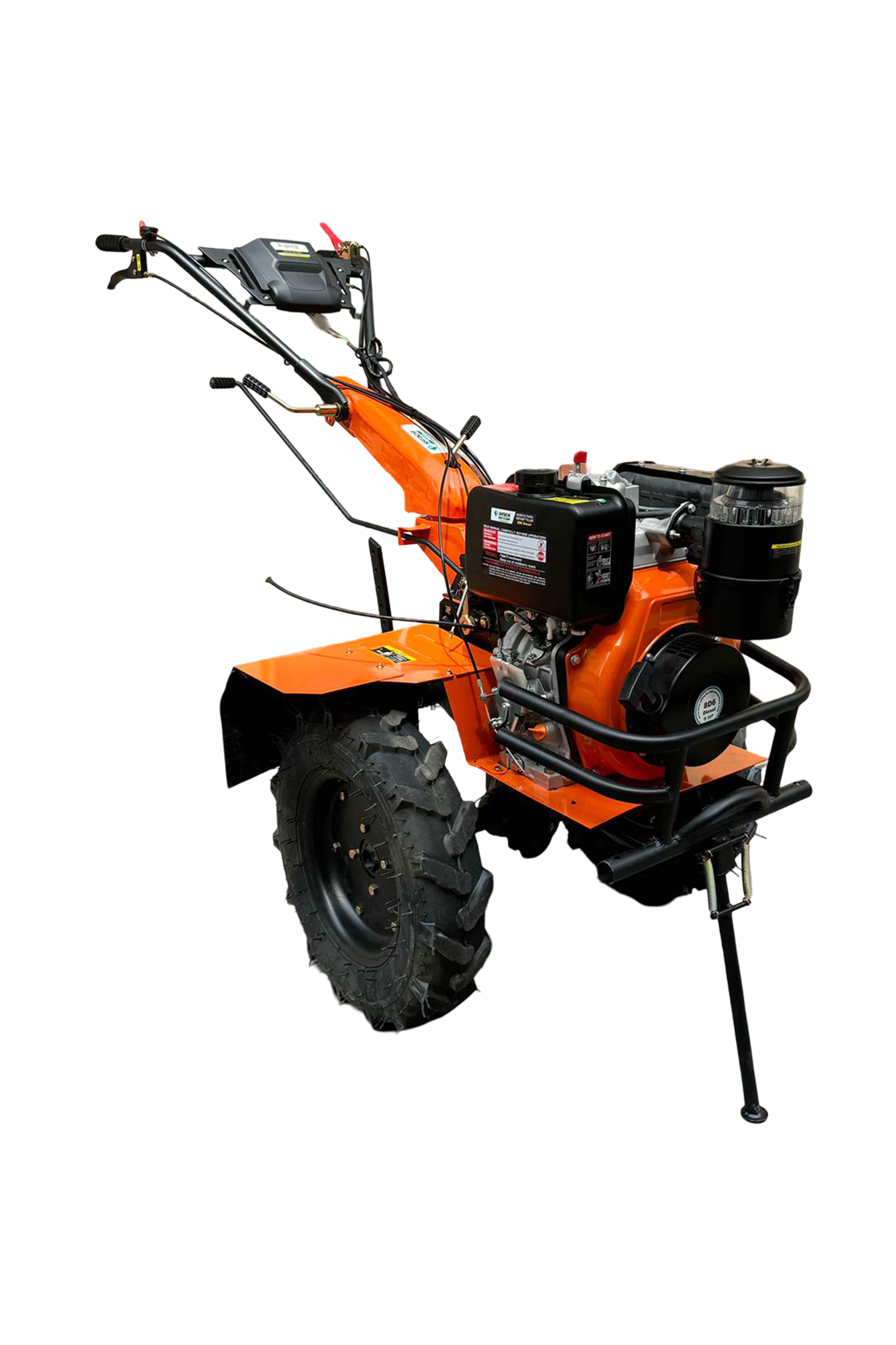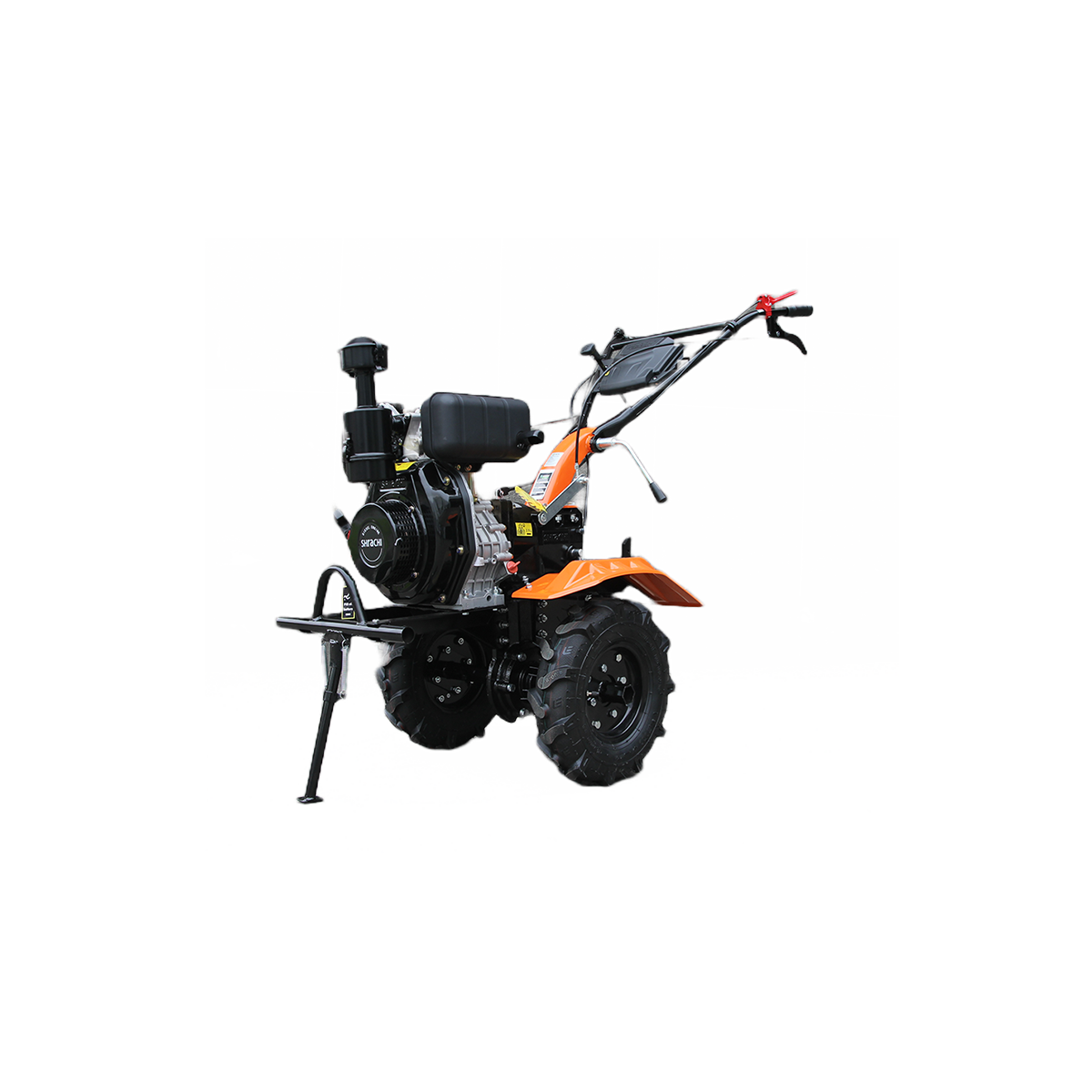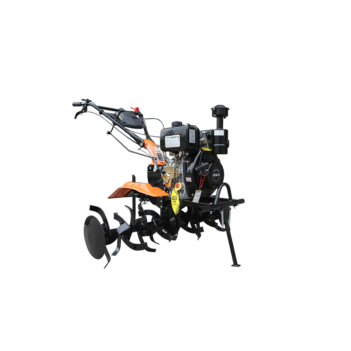The Shrachi 8D6 Hero Diesel Power Weeder is powered by a robust 9HP engine delivering 9HP at 3600 rpm, ensuring high-performance operation across both dryland and wetland conditions. It features a big bumper and mud flap for added protection and durability. With an auxiliary PTO for connecting a water pump, generator, sprayer, and more, this machine offers true multifunctional capability for diverse farming needs.