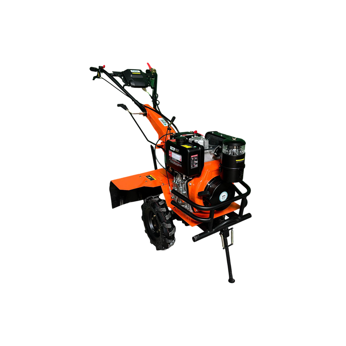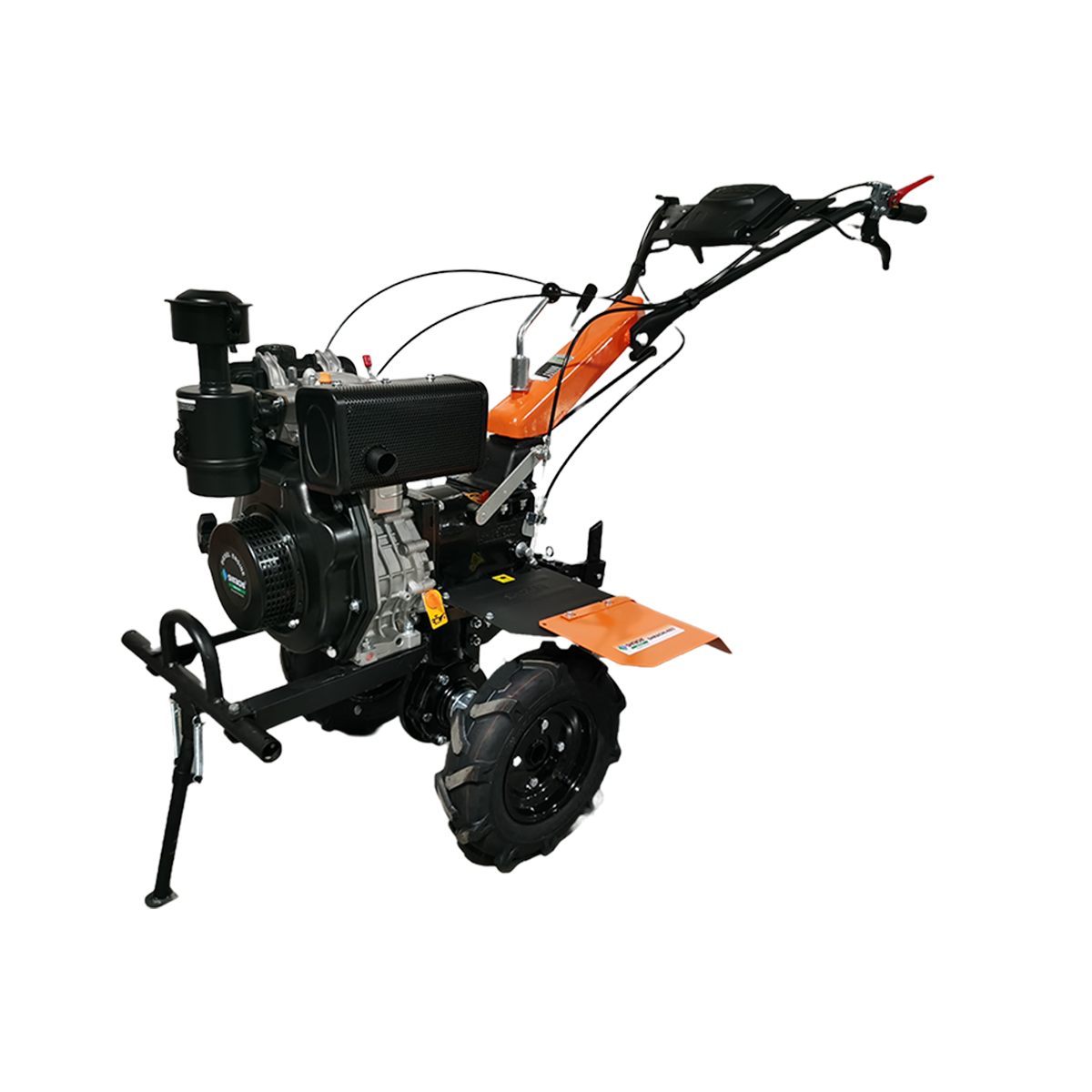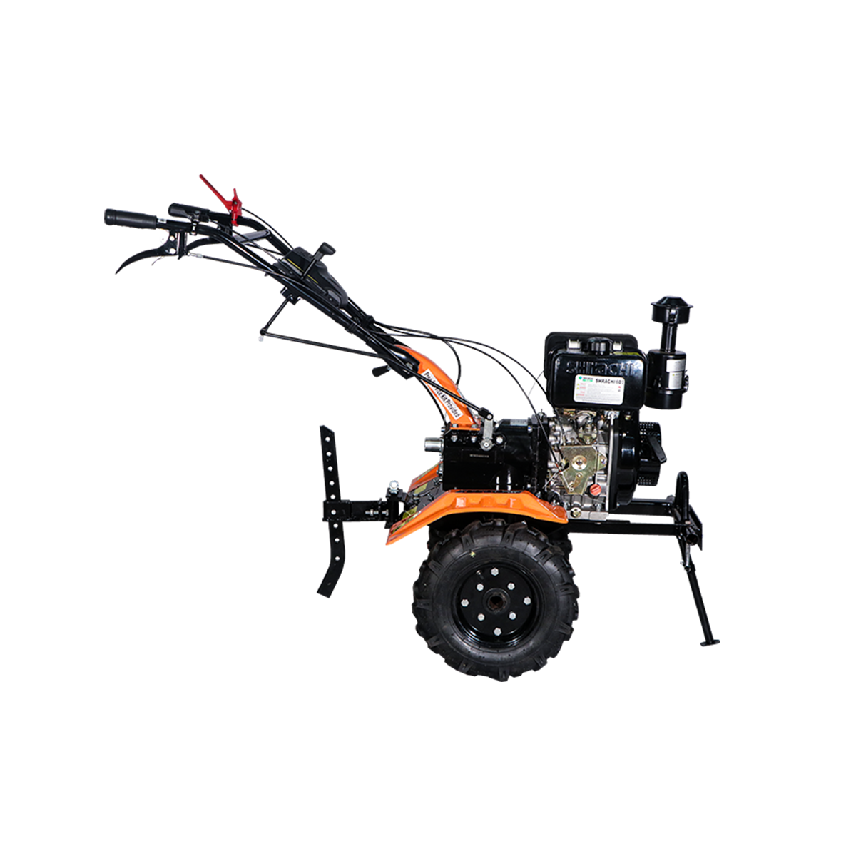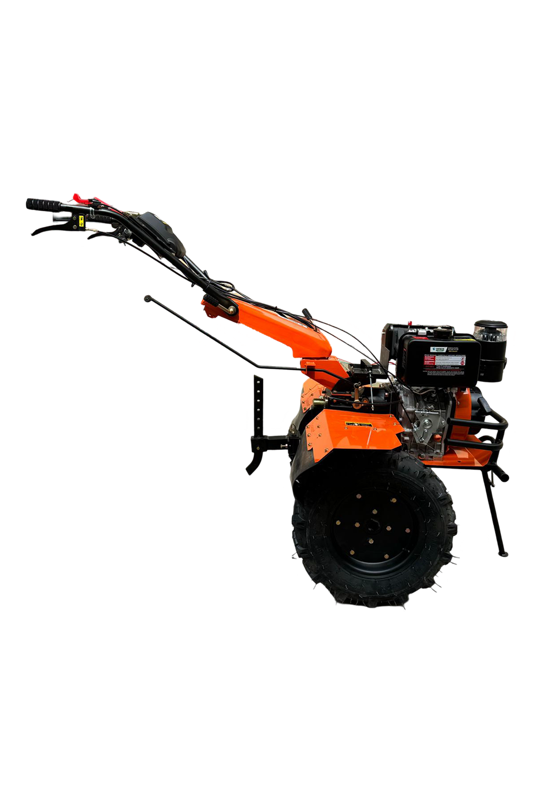 The Shrachi 8D6 Hero Diesel Power Weeder is powered by a robust 9HP engine delivering 9HP at 3600 rpm, ensuring high-performance operation across both dryland and wetland conditions. It features a big bumper and mud flap for added protection and durability. With an auxiliary PTO for connecting a water pump, generator, sprayer, and more, this machine offers true multifunctional capability for diverse farming needs.