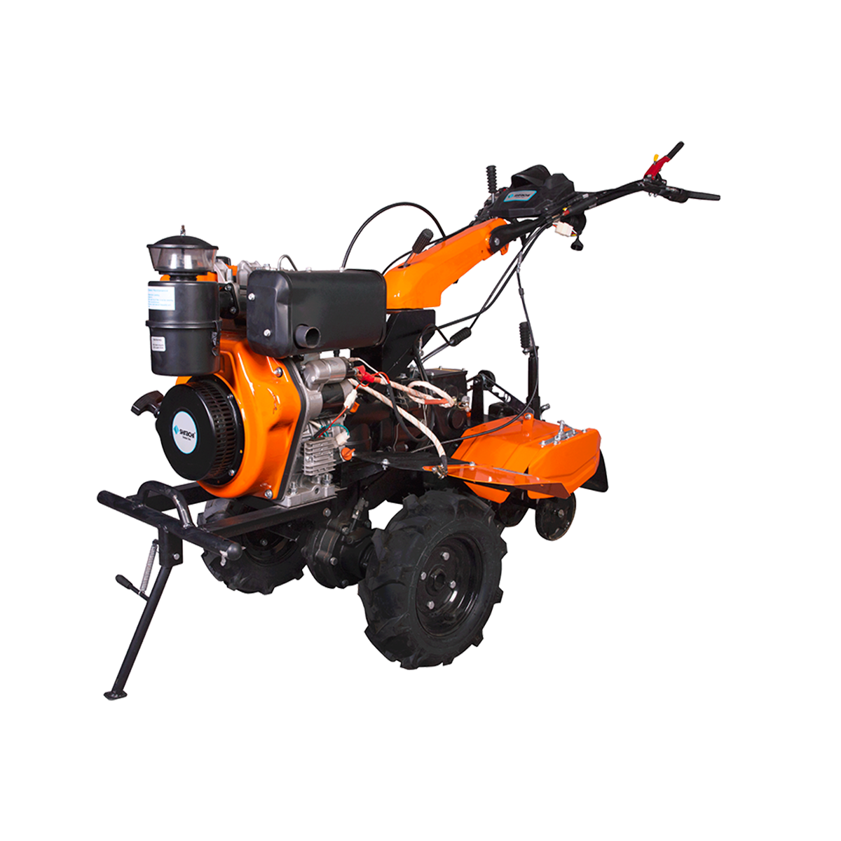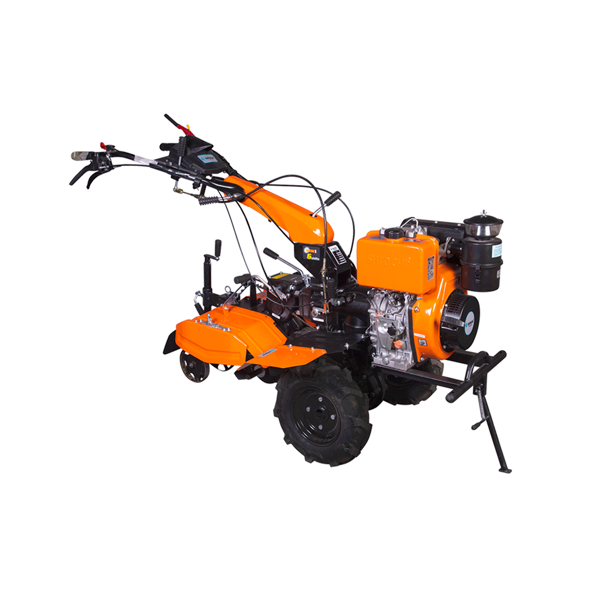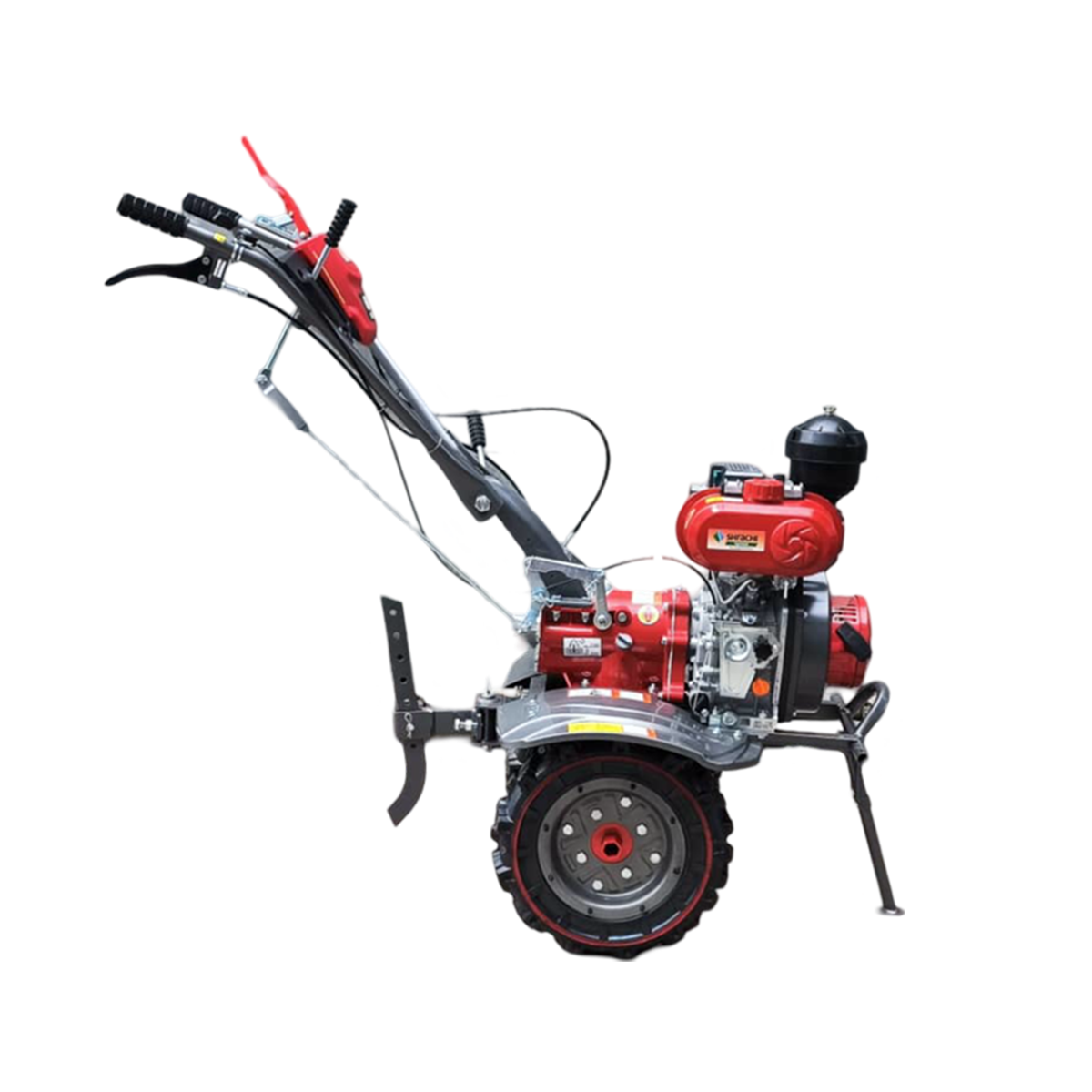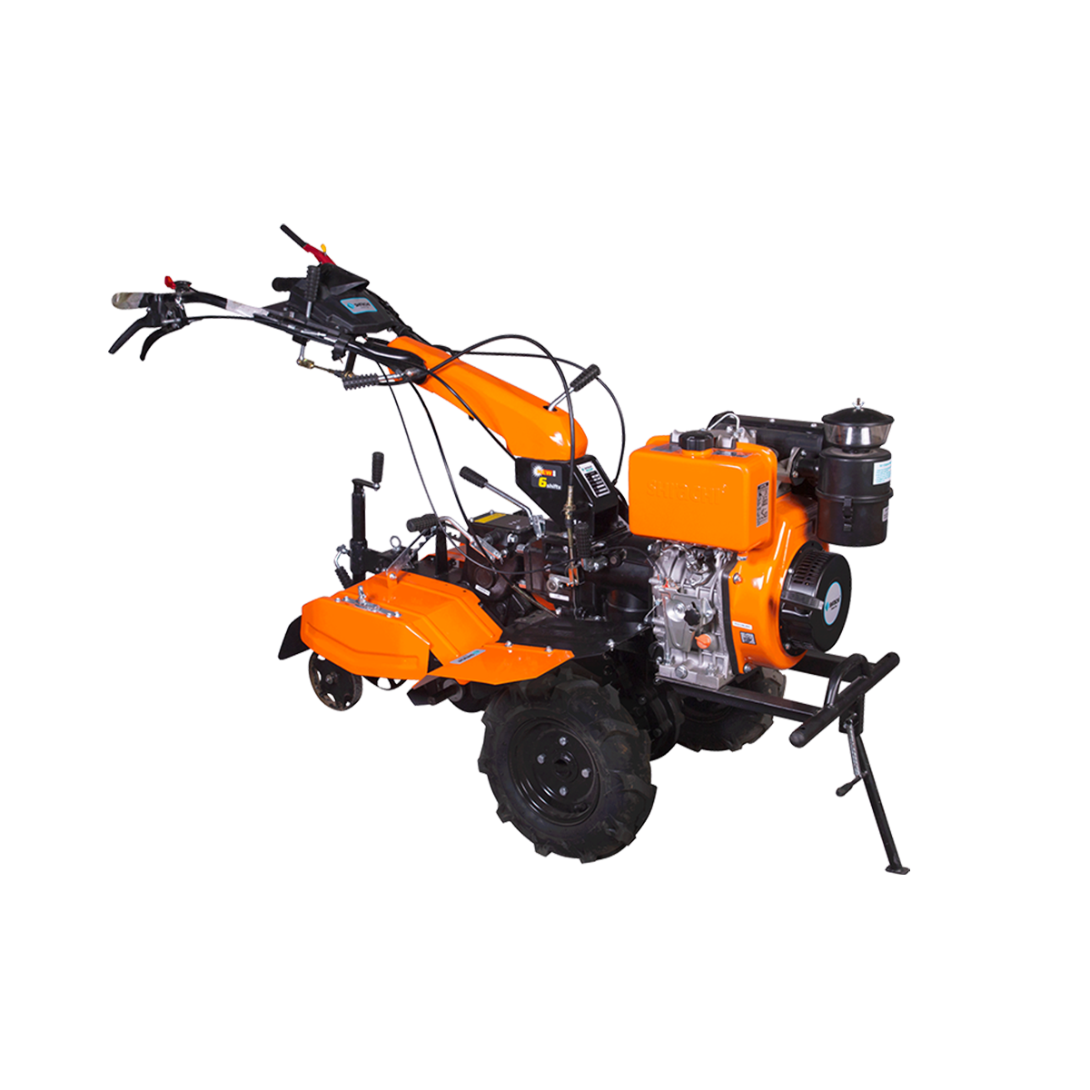 The Shrachi 8D6 Win Diesel Power Weeder is equipped with a powerful 9HP engine delivering 9HP at 3600 rpm, designed for efficient performance in both dryland and wetland applications. It offers an optional 3/6-speed gearbox for enhanced control and versatility. With a PTO for operating water pumps, generators, sprayers, and other attachments, this machine delivers reliable multifunctional capability for diverse farm operations.